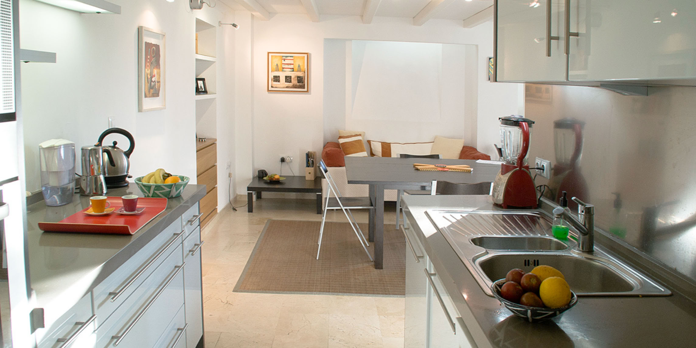 All spices, virgin oil and vinegar, coffee, tea and other dry foods are in the fully equiped kitchen. This allows for easy living/dining and we're so close to that wonderful vegetable/fish market.